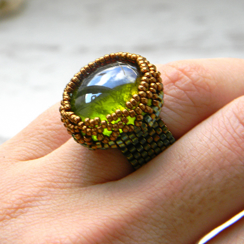 Идеи и схемы для создания зеленого кольца из бисера
