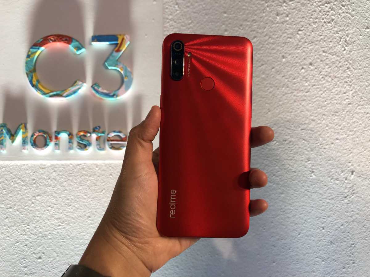 Яркий дизайн смартфона Realme 5i в красном цвете